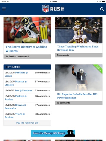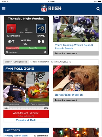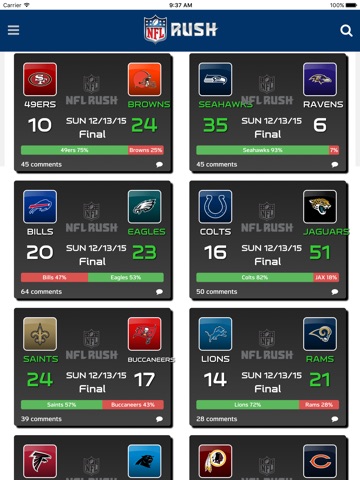 The Official NFL RUSH app brings the National Football League directly to you every day! Connect with your favorite NFL teams and players via: