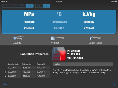 Very reliable free app for steam tables