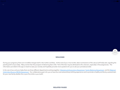 During your pregnancy there are incredible changes both in the mother and fetus. At the end of your nine months, labor will finally start, signaling the pending birth of your baby. Many women fear the prospect of delivering their child. Part of this fear may be attributed to the unknown, especially in first pregnancies. The information provided in this app is meant to ease your anxiety and hopefully provoke more questions for you to ask your prenatal provider.