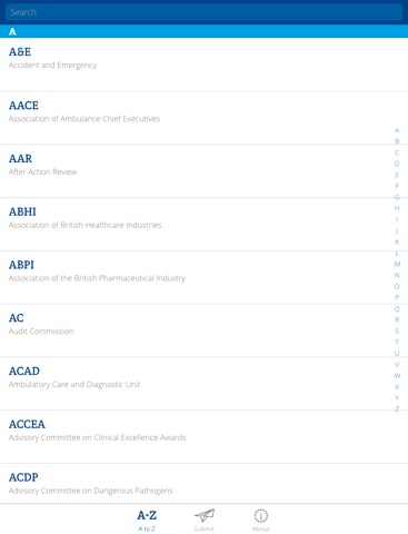 Use this app by browsing alphabetically or searching to make sense of the many acronyms used in the NHS. You can also submit any acronyms that weve missed via the app.