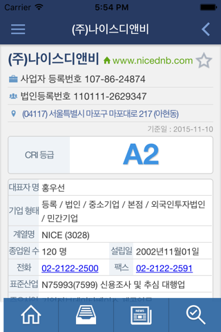 - 국내 최대의 기업신용정보 서비스회사인 ㈜나이스디앤비 기업 조회용 모바일 어플리케이션