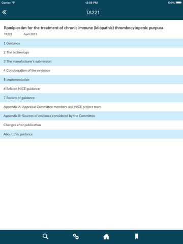 It is the first ever app to contain public health guidance, including topics such as smoking cessation, promoting physical activity, behaviour change and preventing diabetes. It contains all of NICEs clinical guidelines, including those on COPD, hypertension, stroke, chronic heart failure, atrial fibrillation, head injury, depression, ovarian cancer, UTI in children, anxiety and autism. It also contains all NICEs technology appraisals, interventional procedures guidance, medical technology and diagnostics guidance