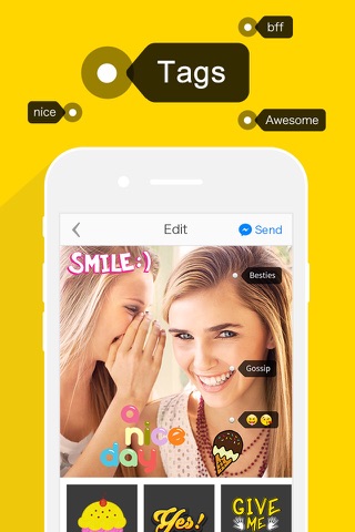 While chatting you can now easily add stickers, filters and tags to a photo and share it to better communicate with your friends.