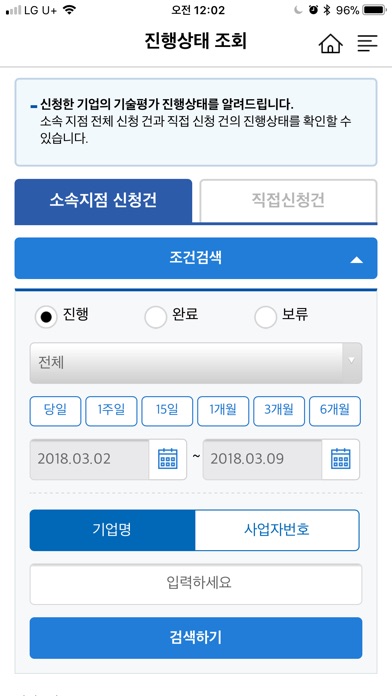 - 진행상태/평가결과 조회 : 평가 진행중/완료인 건에 대한 간편 조회