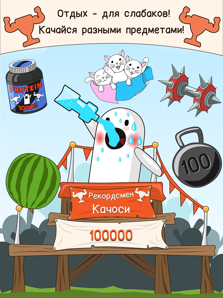Настоящий Качоси выбирает эту игру-кликер, чтобы прокачиваться даже тогда, когда его любимая качалка закрыта! Ничего себе, да?!