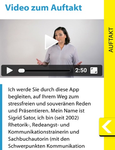 Die App von Sigrid Sator, Mediencoach und Kommunikationstrainerin, liefert ein interaktives Trainingsprogramm – Ihr Begleiter zum stressfreien Reden und Präsentieren.