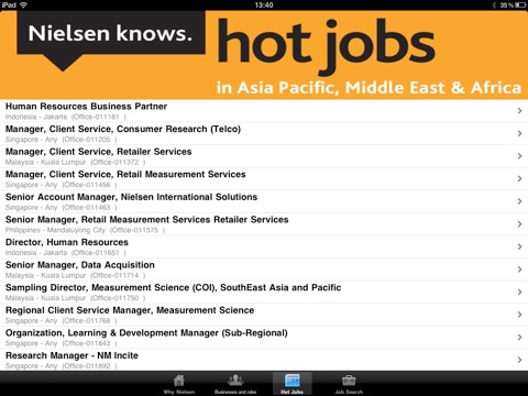 The Nielsen Careers app allows you to search and apply for jobs at Nielsen anytime, anywhere within Asia Pacific, Middle East and Africa.
