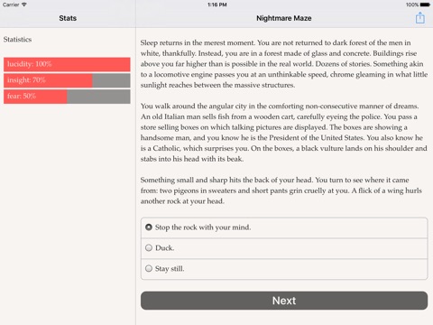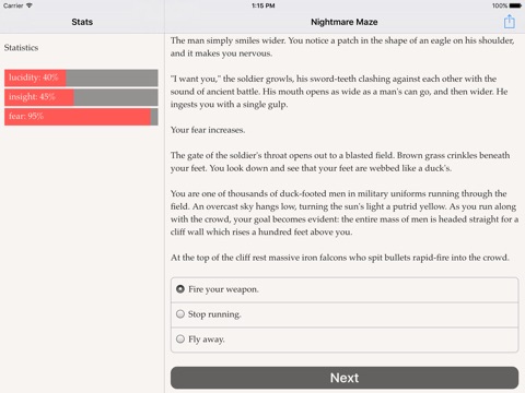 Lose yourself in the depths of a tormented psyche and try to find the logic to the night terrors in this haunting text-based multiple-choice game.