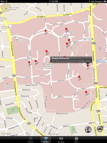This app is an attempt to make this information available to iPhone and iPad users on NIH campus.