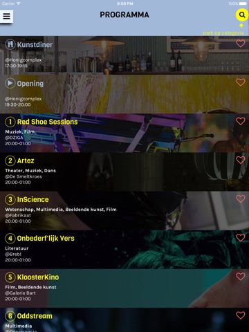 Doorlopend programma: 20:00 – 01:00u