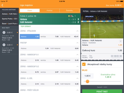 • aplikácia ťa okamžite upozorní na výherné tikety a zápasy tvojich obľúbených tímov