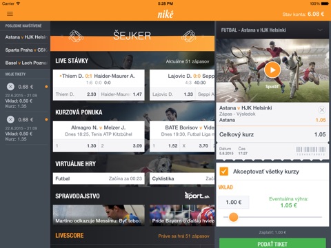 Svet tipovania priamo v tvojom mobile. Pridaj sa aj ty k najlepším a užívaj si výhody klubu Niké kedykoľvek a kdekoľvek. Niké je najväčšou stávkovou kanceláriou na Slovensku už od roku 1991. Mobilná aplikácia nabitá funkciami prináša zážitok pre každého správneho tipéra.