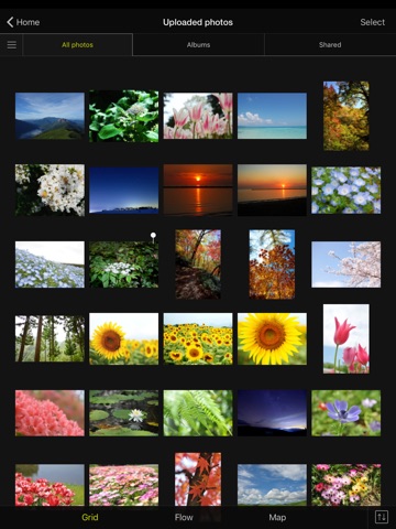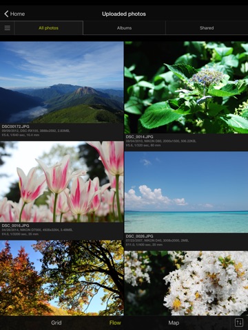 - Switch between the two views (Grid/Flow) to enjoy viewing photos in a form suited to your preferences.