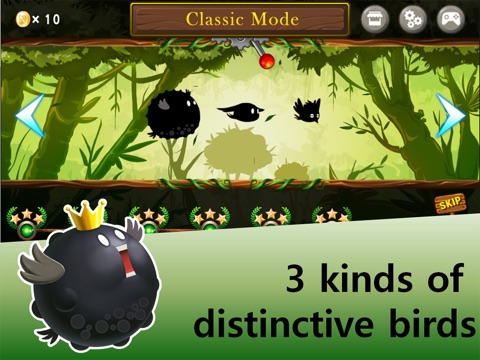 You must help the Nimble Birds flee from the jungle. Evil men are trying to destroy the jungle. Machines are coming to crush everything in order to build a new shopping mall. The Nimble Birds must fly away and find a new home in the forest, a place where they will be safe from the machines. Help the Nimble Birds get away safely to their new home!