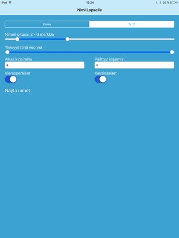 Käytettävissäsi on erilaisia hakuehtoja, joilla löydät esimerkiksi muiden lasten tai vanhempien nimien kanssa hyvin yhteen sointuvat nimet.