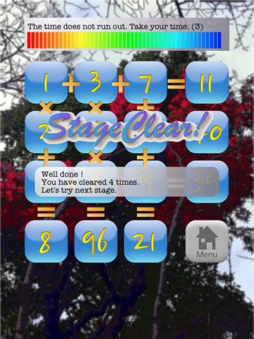 There are Addition, Subtraction and Multiplication mode. As you can combine those mode each other, you have seven modes to challenge.