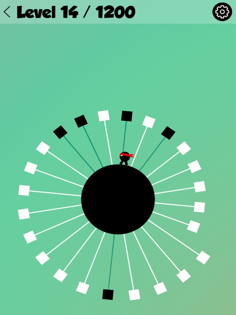 Just click or tap at any screen position to jump the Ninja Hero, dont touch the black tiles on the circle and destroy all the white tiles.