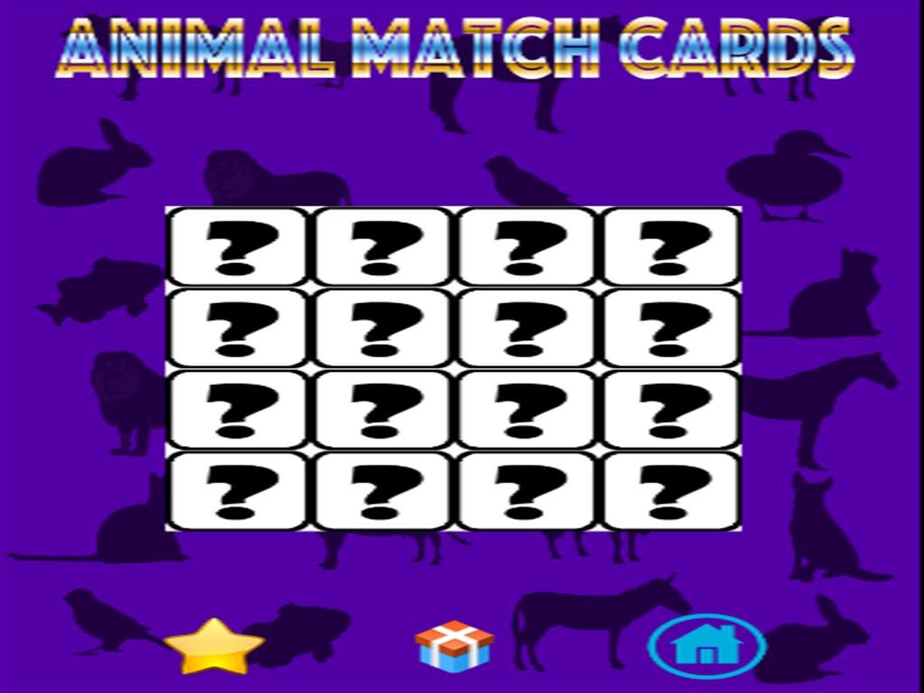 Exercise your memory with animal match cards. Animal match cards is a classic pairs card game. Cards are laid out in a grid face down, and players take turns flipping pairs of cards over. If the two cards match they flip back and disappear.