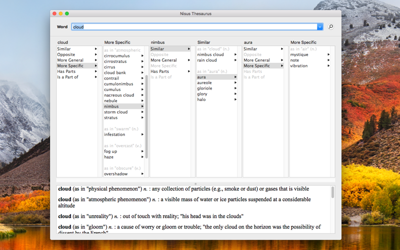 I have been using Nisus Thesaurus for many years in my writing, copyediting, and translation gigs. It is as indespensible as any good dictionary and it speeds up my work a great deal.