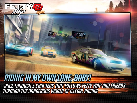 Protect your turf and uncover a string of mysterious accidents and deaths in the racing community. Race through 3 unique race environments and play through 5 storyline chapters that follows Fetty Wap, Monty and Justin with a cast of characters in the dangerous world of illegal racing.