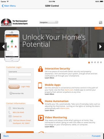 With this app, registered customers may pay their invoices and control Nitro Based GSM Security Systems.