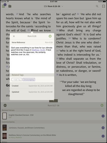 This bible is with me every day. I use it not only Sunday mornings to follow the sermons and takes notes, but to assist in leading our small group, keep prayer notes, cross-references verses and commentaries, and maintain daily reading plans... And all of those important readings cross reference each other when this tool is used to only a modicum of its capability; giving such increased depth to the practical application of Gods Word on a daily basis that makes keeping His Word before me each day easy and intuitive. Thank you, this purchase was well worth it.
