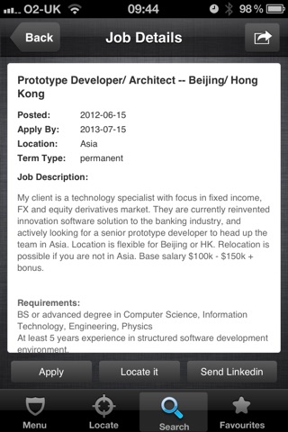 Interested in relocating? This App will allow you to search for roles across Europe, USA and Asia or if you prefer, ones right on your doorstep.