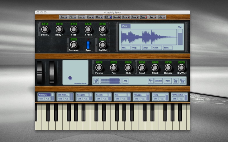 Avec un clavier maître, un mac et Nlog on peut ressusciter les sonorités 70s et 80s des bons vieux synthés analogiques. Les paramètres sont infinis mais facilement maitrisables, les quatre oscillateurs virtuels et les filtres en pagaille permettent de sculpter des sonorités chaudes, organiques et crédibles. Cerise sur le gâteau : NLog existe aussi en Audio Unit à intégrer dans GarageBand ou tout autre séquenceur. Cest un incontournable de la musique sur Mac. EDIT : la nouvelle version rajoute une banque de son fantastique et surtout : la version Audio Unit offerte offre enfin le choix entre polyphonie et monodie. Meilleur que jamais !