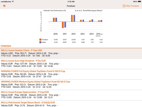 Met de Fondsen app van NN Investment Partners kun je overal je NN beleggingsfondsen bijhouden. Per fonds zijn de koers en rendementen beschikbaar. Door jouw NN beleggingsfondsen in Mijn Fondsen te zetten kun je in 1 overzicht al je fondsen bij houden.