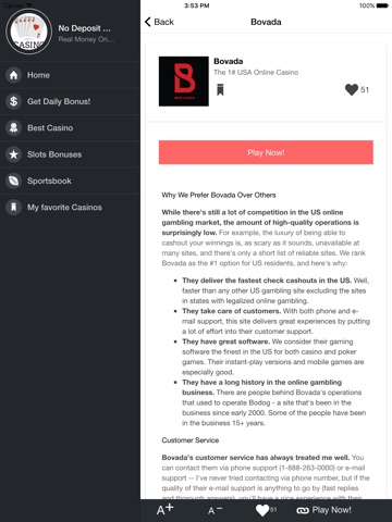 Beginners with this app, can use a “ranking by like” system to find a safe casino , also the expert ones can use this app to stay tuned on new casino bonuses and online casino upgrades.