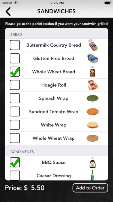 Select from customized sandwiches, to healthy sides and drinks.