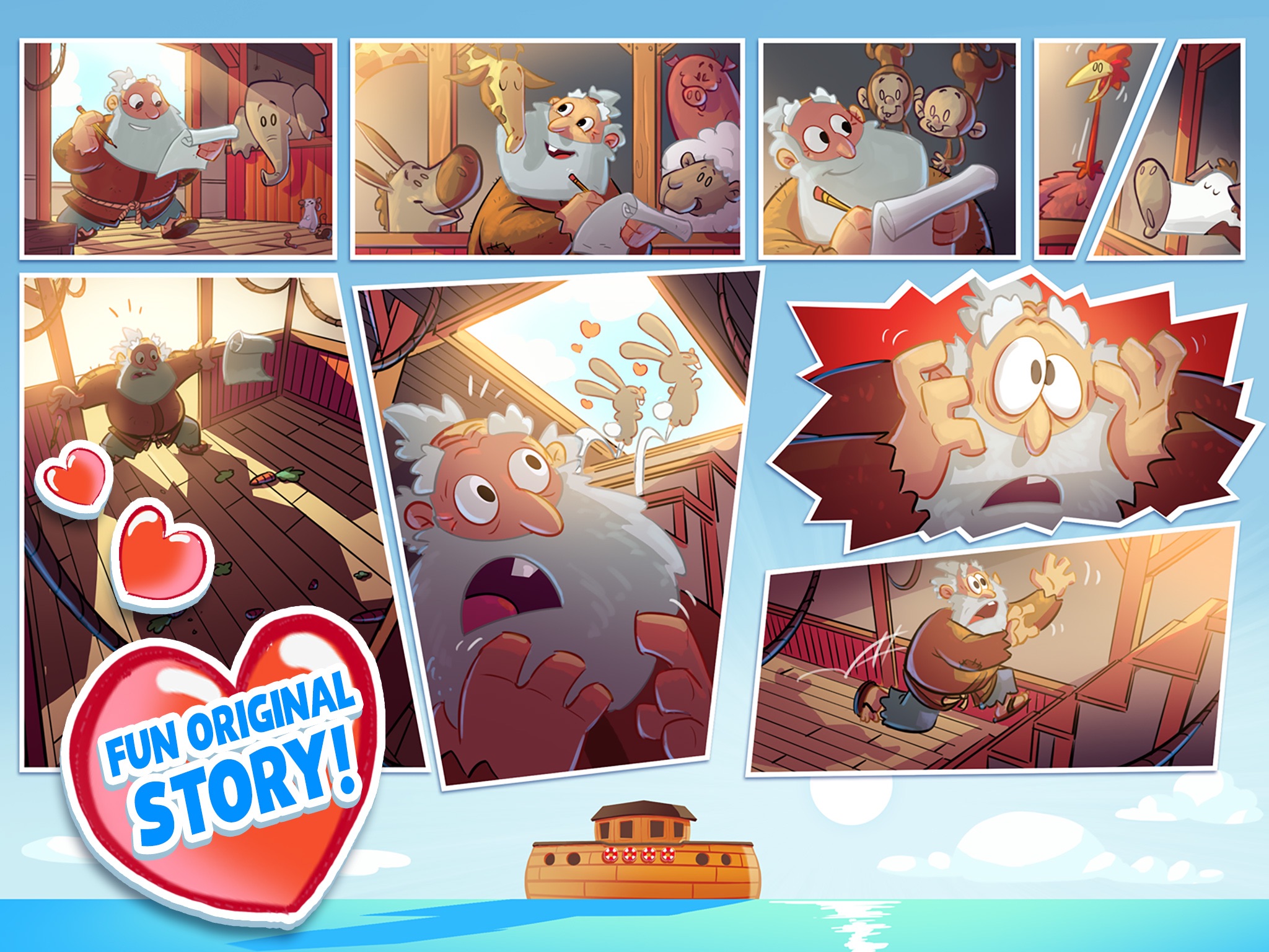 Noahs got a problem, and its multiplying! The bunnies have escaped, and its up to Noah to keep them from kissing, multiplying, and falling off the ark!