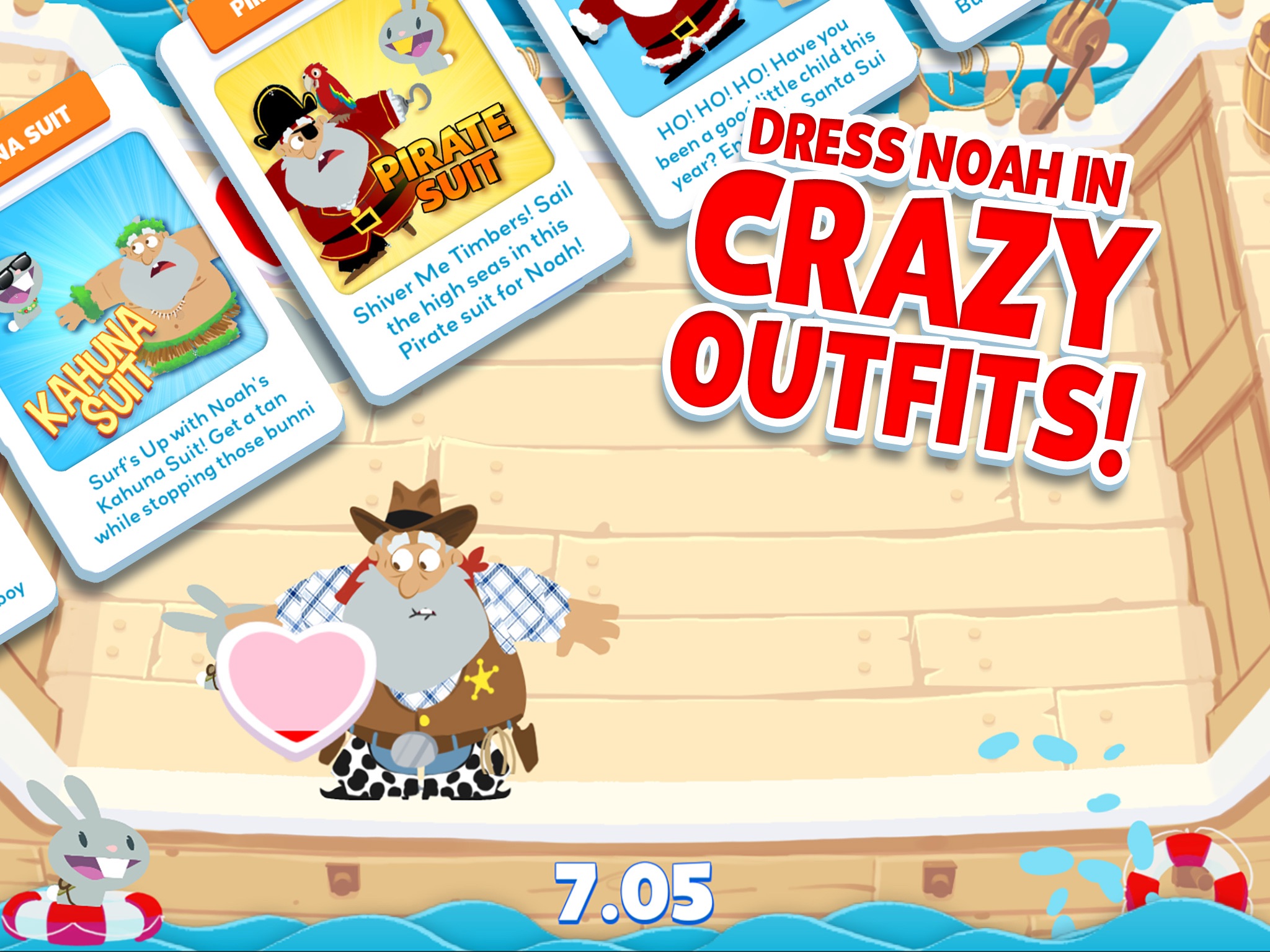Unlock fun costumes to dress Noah and the bunnies up in! Cowboy, Pirate, Kahuna, Santa, and SUPERNOAH!