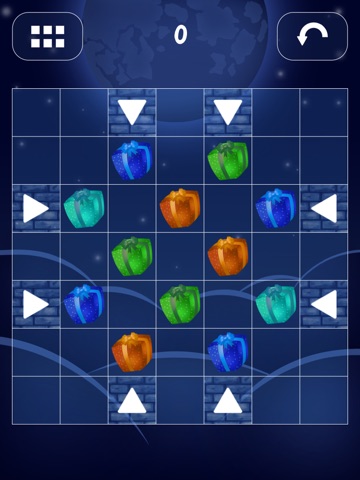 Help Santa make out the gifts! He will be so grateful! Time is running out! Gifts should be put in a bag of the same color groups (pairs, triplets, etс), the more groups in one turn removed, the better. Less words more action! Push on arrows quickly!