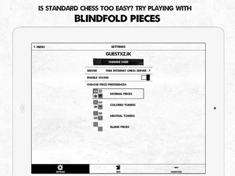I like your app, it good to learn playing blindfold chess but on my opinion it doesnt have a feature that paid version should have. - If I am playing a blindfold chess and I am a beginner I can do some stupid moves and let my piece to die forgetting that opponents piece is there. And such things are pity because the opponent sees the board. It would be good to have ability to create a private game where my friend who plays blindfold chess on another device and knows my password would find me and join my game. - if that is not possible because of the server, please add at least a game where I and my friend would play blindfold chess on the same board on one device. So device will only control that the piece is there and move is legal.