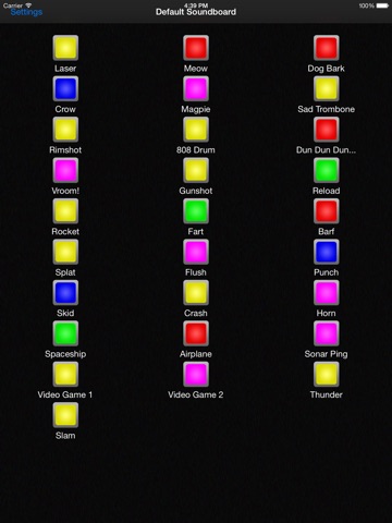 Noisebuttons! allows you to create your own custom soundboards using a library of included sound effects, songs from your iTunes library, or sound files manually loaded onto your iPhone, iPad or iPod Touch with iTunes file sharing feature.