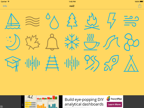 Ocean, River, Rain, Forest, Fire, Thunder, Wind, Moon, Leaves, Bell, Snow, Cafe, Dolphin, Fan, Library, WhiteNoise, Train, PinkNoise, City, Starship, Countryside, Washing machine, Teeter, and much more...