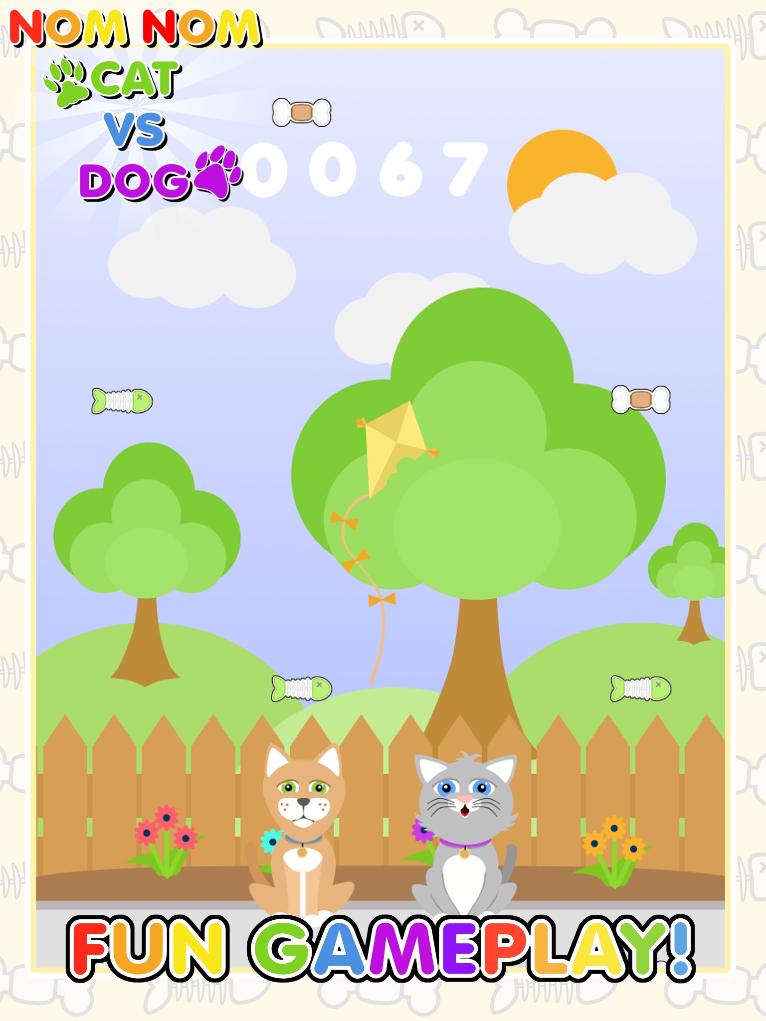 Nom Nom Cat vs Dog is a free fun game for all ages and suitable for both boys, girls and animal loves of any age.