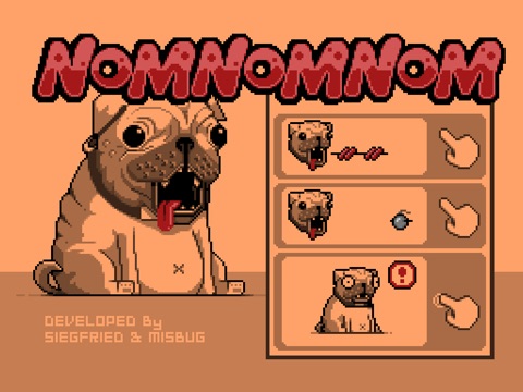 This is Pug #1 and he is really hungry! The only way to make him happy is to feed him as fast as you can. Do it properly and as Grandma pug says: “Chomp to nom if you want to be a good bloke, otherwise bad things will happen and you’re going to choke!”.