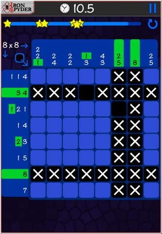 NoNo is a Nonogram game brought to you by Iron Spyder Studios. Its easy to play, fun, and addictive! Enjoy hundreds of puzzles of various sizes and difficulties. Race against the clock to beat your fastest times and earn stars. Complete achievements to earn even more stars. With both preset and random puzzles as well as 14 new and FREE puzzles added every day, the fun never ends!