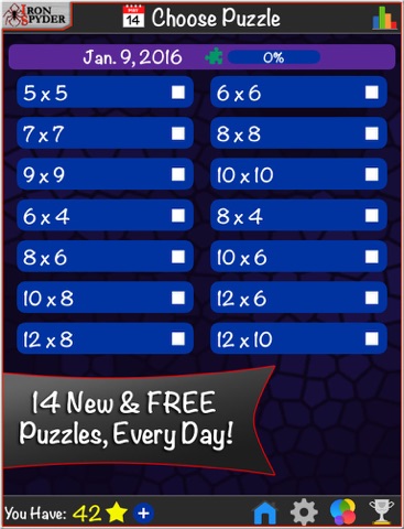 * Assorted puzzle sizes as large as 26 x 22 (iPad) and 24 x 14 (iPhone)!