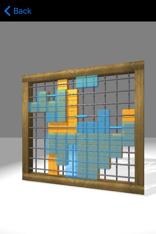 Slide the front and back blocks so they match to solve the puzzle. The blocks on one side slide horizontally, on the other side vertically.