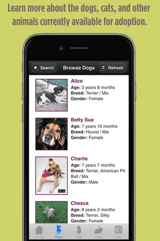 The Norfolk SPCA mobile app gives potential pet owners the ability to browse animals currently available for adoption at the Norfolk SPCA from the convenience of their smartphone or tablet.