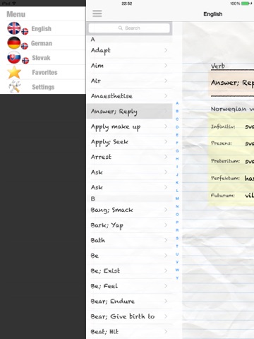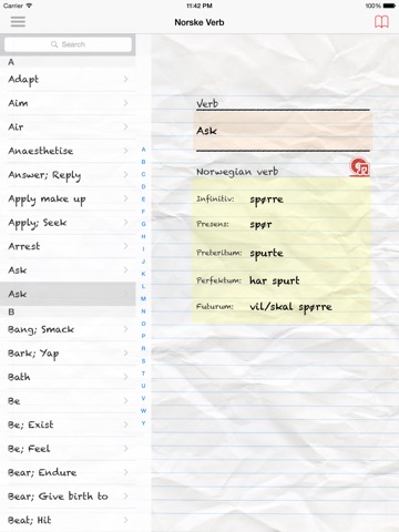 Norske Verb app help you learn more then 300 norwegian verbs.