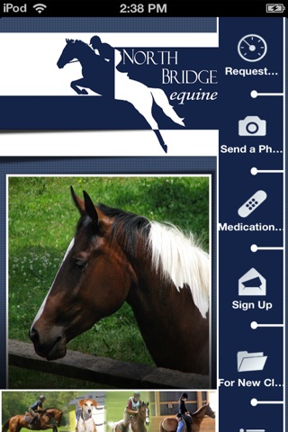 Download the North Bridge Equine App to request appointments, request refills of your Horses medication, and receive notifications. Our new mobile app gives you instant access information to help you with your horse.