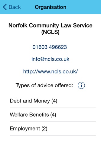 As well as providing a directory of organisations around Norfolk that provide information and advice on a range of different topics, the App also links to relevant online resources. These resources may, in some instances, assist the user in resolving the issue without the need to contact one of the advice agencies.