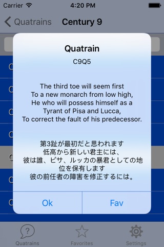 In this app, Nostradamus writings are presented in both the original French, and with the English translation.