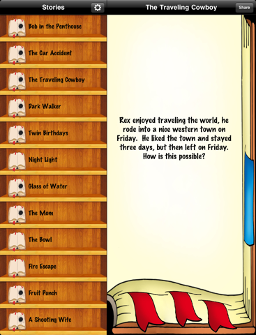 Do you know how the cowboy rode into town on Friday, stayed three days, then left on Friday? Have fun figuring out the answer to this lateral puzzle and more "Stories with Holes" by downloading "Not the Hole Story" today!