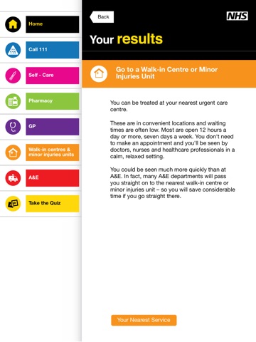 Not Always A&E - this app will help you decide what to do and where to go if you are injured or unwell in Barking and Dagenham, Havering and Redbridge and help locate NHS services for you. It contains the names, addresses, telephone numbers and opening hours of every GP surgery, pharmacy and walk in centre or minor injuries unit in the area. It also gives advice on how to manage minor illnesses yourself. Beat the clock and test your knowledge in our fun game.