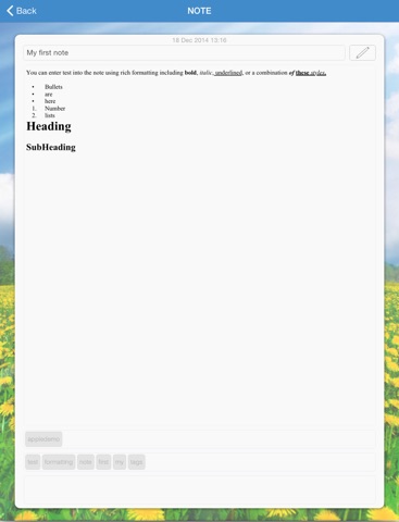 This first version of the app enables you to quickly create notes on the run, adding photos, and voice notes, easily and quickly. Use the web client for NotaZone to manage and edit your notes.